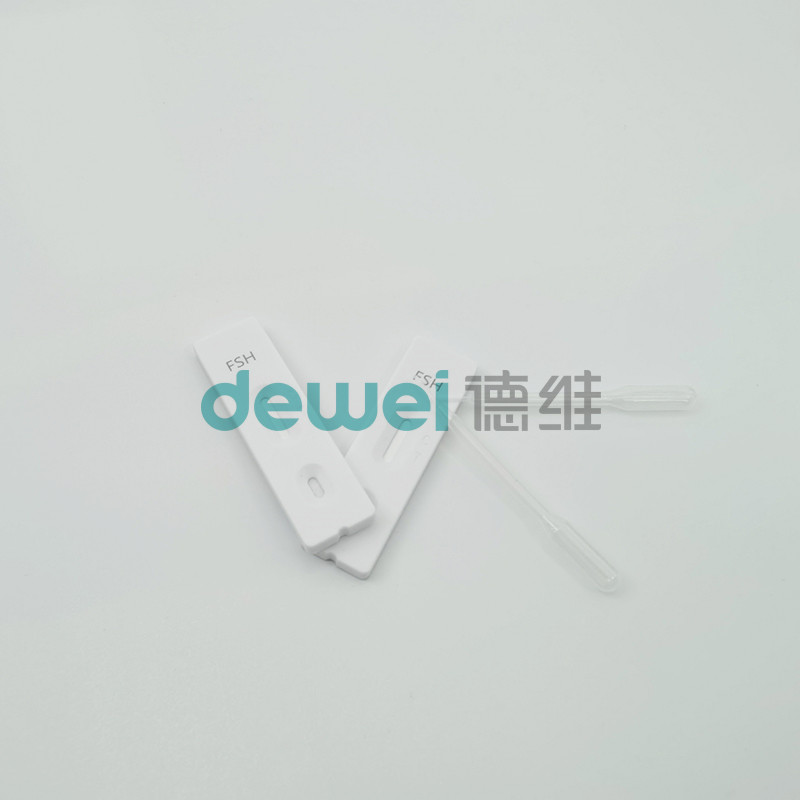 Η ταχεία δοκιμή FSH είναι μια ποιοτική ανοσολογική δοκιμή με πλευρική ροή για την ποιοτική ανίχνευση της ανθρώπινης ορμόνης διέγερσης ωοθυλακίων στα ούρα για την αξιολόγηση της έναρξης της εμμηνόπαυσης στις γυναίκες.Το τεστ χρησιμοποιεί ένα συνδυασμό αντισωμάτων, συμπεριλαμβανομένου ενός μονοκλωνικού αντισώματος κατά της FSH, για να ανιχνεύσει επιλεκτικά αυξημένα επίπεδα FSH.Η δοκιμή διεξάγεται προσθέτοντας ένα δείγμα ούρων στο δείγμα του δοκιμαστικού πηγάδι και παρατηρώντας το σχηματισμό χρωματιστών γραμμών.Το δείγμα μεταναστεύει μέσω τριχοειδούς δράσης κατά μήκος της μεμβράνης για να αντιδράσει με το χρωματιστό συνδυασμό. Positive specimens react with the specific antibody-FSH colored conjugate to form a colored line at the Test Line Region of the membrane which is darker than or the same shade as the line in the Control Line RegionΓια να χρησιμεύσει ως διαδικαστικός έλεγχος, μια έγχρωμη γραμμή θα εμφανίζεται πάντα στην περιοχή της γραμμής ελέγχου, που υποδεικνύει ότι έχει προστεθεί ο κατάλληλος όγκος δείγματος και ότι έχει σημειωθεί διάβρωση της μεμβράνης.